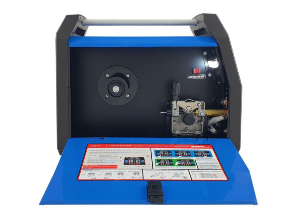 SET DIGIMIG 202 M-POWER Sherman hegesztőgép acél és színesfémek kézi hegesztésére szolgál. Lehetővé teszi a hegesztést MMA (bevonatos elektróda), TIG Lift és MIG/MAG módszerekkel. Az induktivitásszabályozás lehetővé teszi vékony lemezek hegesztését és forrasztást. A készülék szinergikus beállításokkal rendelkezik a MIG/MAG módszerhez szerkezeti acél, rozsdamentes acél és alumíniumötvözetek hegesztéséhez. A polaritásváltás lehetővé teszi az önvédő huzallal történő hegesztést. A hegesztőgép lehetővé teszi egy Spool Gun (SG) tartó csatlakoztatását egy mini huzaladagolóhoz és egy D100 acél- vagy színesfém huzaldobhoz.