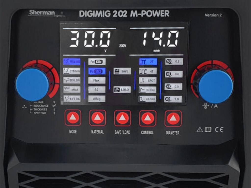 GIGA SET DIGIMIG 202 M-POWER Sherman hegesztőgép acél és színesfémek kézi hegesztésére szolgál. Lehetővé teszi a hegesztést MMA (bevonatos elektróda), TIG Lift és MIG/MAG módszerekkel. Az induktivitásszabályozás lehetővé teszi vékony lemezek hegesztését és forrasztást. A készülék szinergikus beállításokkal rendelkezik a MIG/MAG módszerhez szerkezeti acél, rozsdamentes acél és alumíniumötvözetek hegesztéséhez. A polaritásváltás lehetővé teszi az önvédő huzallal történő hegesztést. A hegesztőgép lehetővé teszi egy Spool Gun (SG) tartó csatlakoztatását egy mini huzaladagolóhoz és egy D100 acél- vagy színesfém huzaldobhoz.