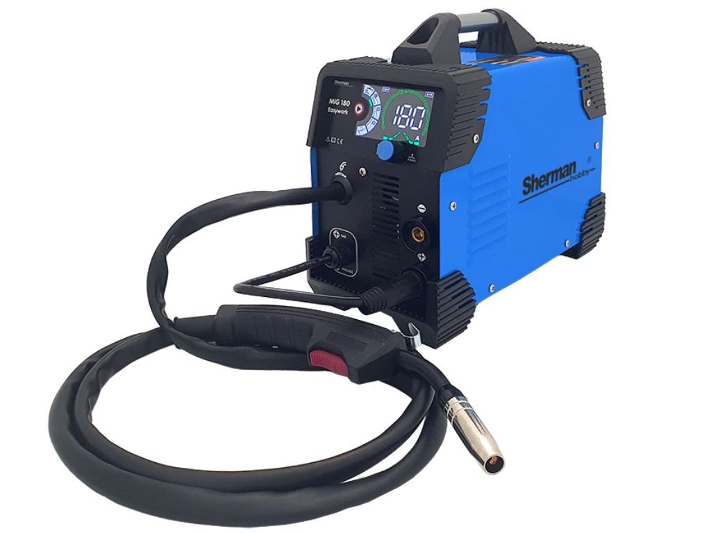 Giga set Sherman MIG 180 Easywork szinergikus hegesztő egy könnyen használható készülék acél és színesfémek kézi hegesztéséhez MMA (bevonatos elektróda), TIG Lift és MIG/MAG módszerekkel.