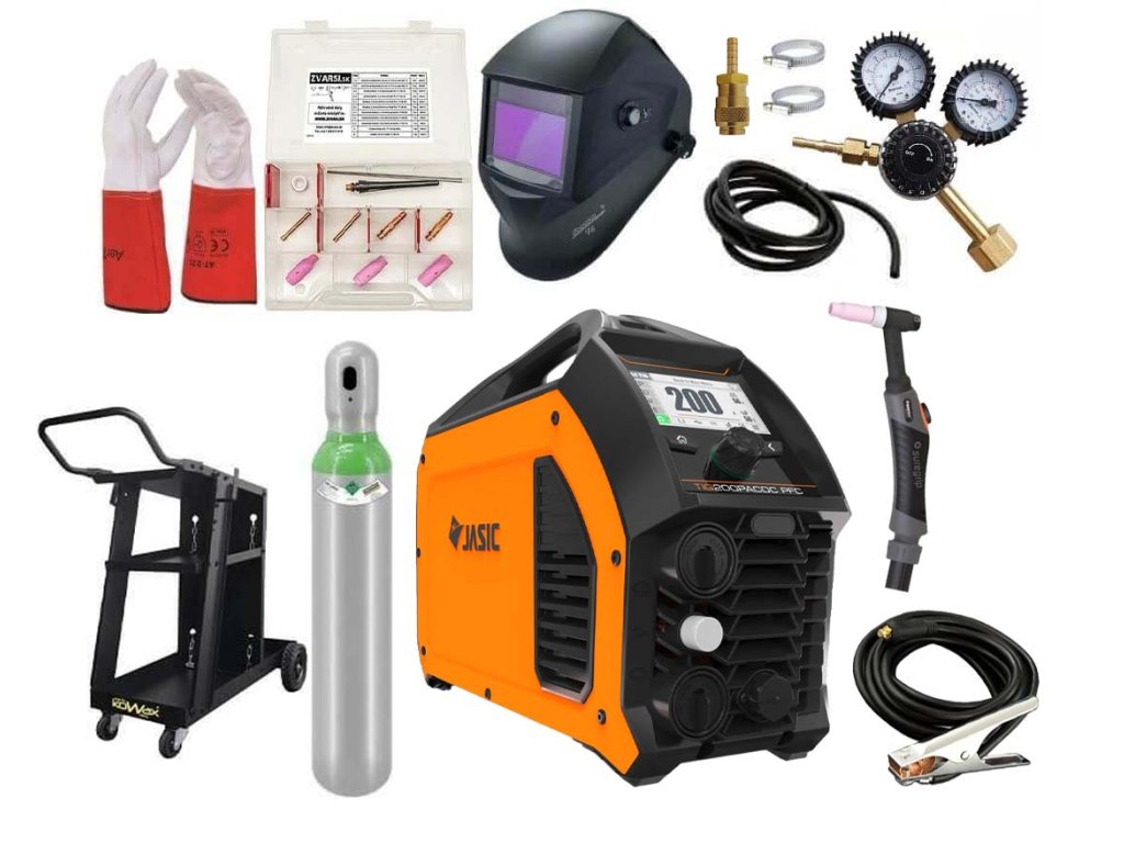 Giga szett TIG hegesztőgép JASIC 200 Pulse AC/DC PFC LCD