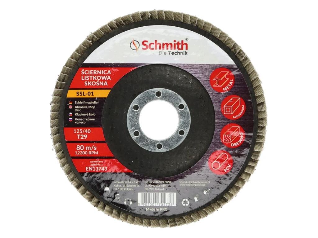 125 mm-es korund lamellás csiszolótárcsa, 40-es szemcseméretű Schmith különféle anyagok csiszolásához és simításához, durva karcolások eltávolításához, forrasztások és fúziók csiszolásához, felülettisztításhoz, homlok- és felületcsiszoláshoz. Ideális megoldás mindazok számára, akiknek nagy csiszolási hatékonyságra és hosszú korong-élettartamra van szükségük.
