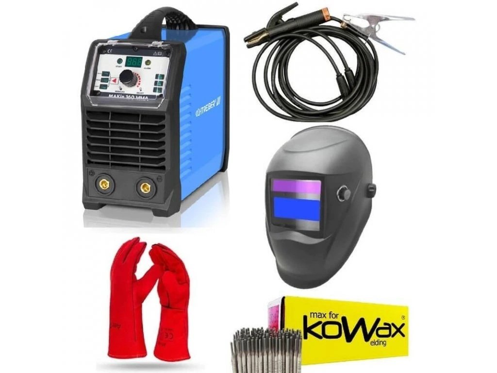 AMega set hegesztőgép MAKin 160 MMA Kühtreiber egy professzionális inverter, amelyet magas minőségű hegesztéshez terveztek bevonatos elektródával, továbbá a TIG Lift hegesztés lehetőségével (kaparás érintéses gyújtással).