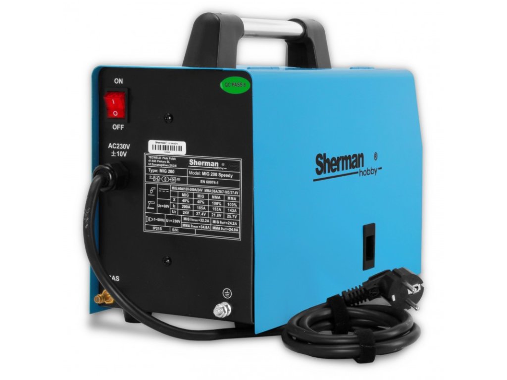 Mega szett inverteres CO2 hegesztőgép SHERMAN MIG 200 SPEEDY acél és színesfémek hegesztésére tervezve. Lehetőség vanhuzallal (MIG/MAG) és elektródával (MMA) történő hegesztésre. A polarizáció megváltoztatásakor lehetőség van csöves (cső) huzallal történő hegesztésre is gáz használata nélkül.
