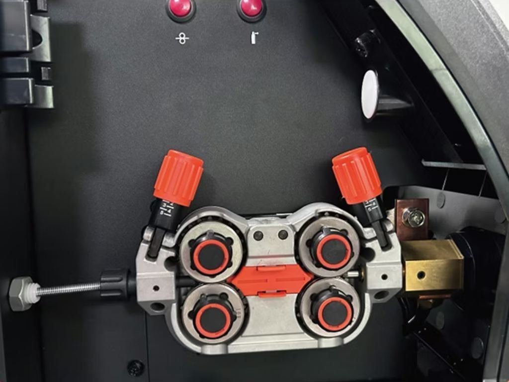 - Továbbfejlesztett előtolási mechanizmus – dupla huzalhajtás a stabil és precíz előtolásért, az előtológörgők gyors cseréjéért és az elakadásgátló kialakításért.