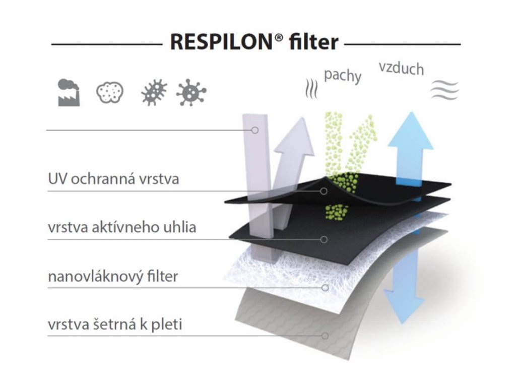 ARespiPro Carbon egy FFP2 nanoszálas légzőkészülék, amely csapdába ejti a vírusokat, baktériumokat, szmogot, polleneket és allergéneket. Az aktív szén-szén réteg megszünteti a szagokat.