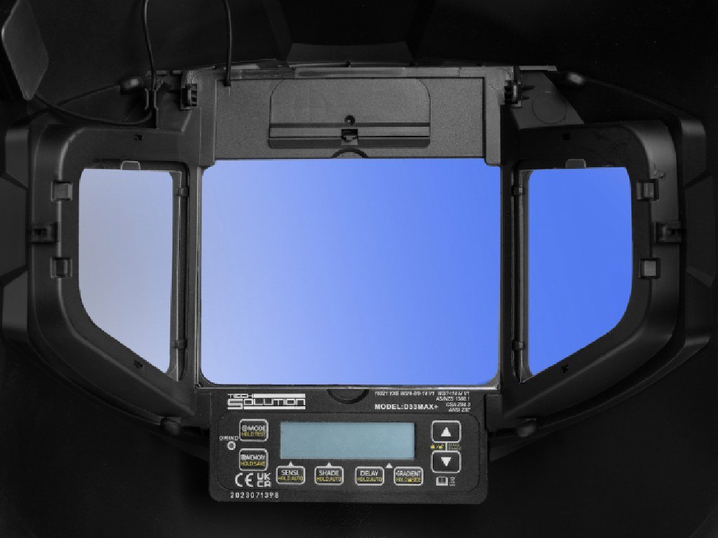 A SOLUTION automatikusan sötétedő hegesztősisakTS-1000 Panorama széles látószögű, 180°-os látószöget kínál, ami javítja a láthatóságot hegesztés és anyaggal való munka közben. Különböző hegesztési technikákhoz alkalmas, beleértve az MMA, MIG/MAG, TIG, valamint a plazmavágást és -csiszolást. A sisak hatékonyan szűri a látást károsító kék fényt, ami csökkenti a szemfáradtságot hosszabb munka során.