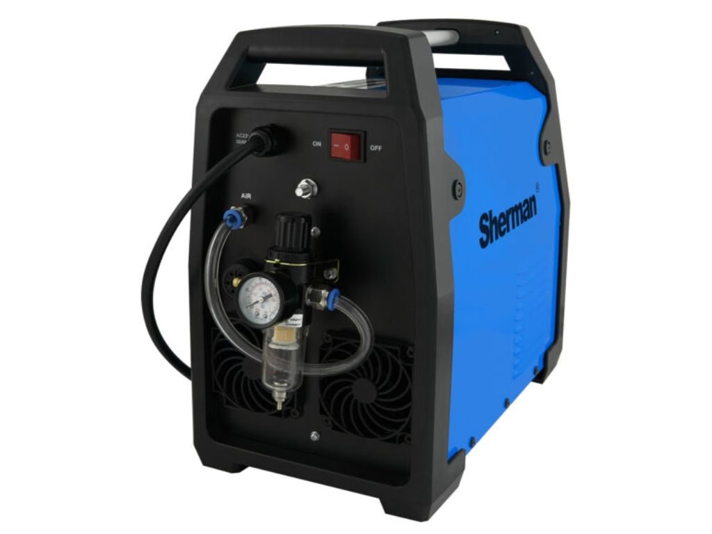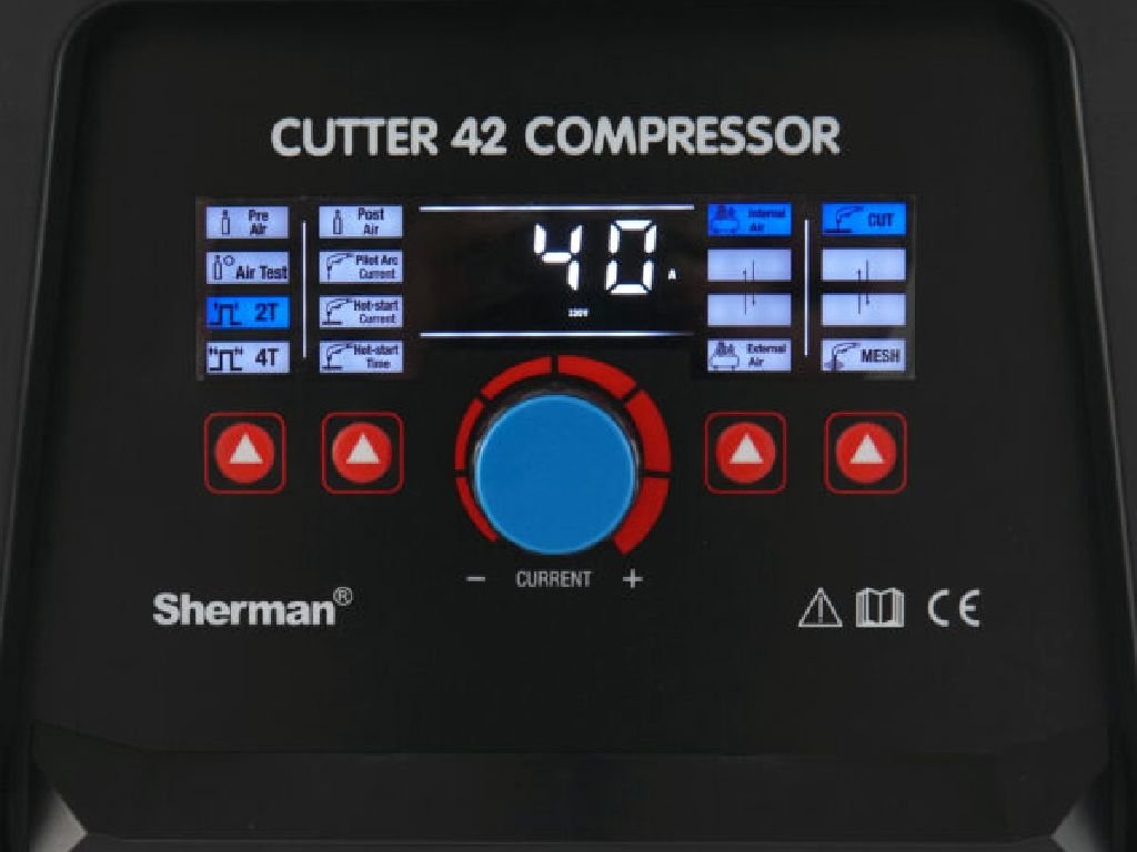 A Sherman CUTTER 42 COMPRESSOR plazmavágó egy modern, digitálisan vezérelt levegős plazmavágó berendezés, amelyet szénacél, rozsdamentes acél, alumínium és réz vágására terveztek. Ideális közepes vágási intenzitású gyártási műveletekhez, valamint szerviz- és kézműves műhelyekhez.