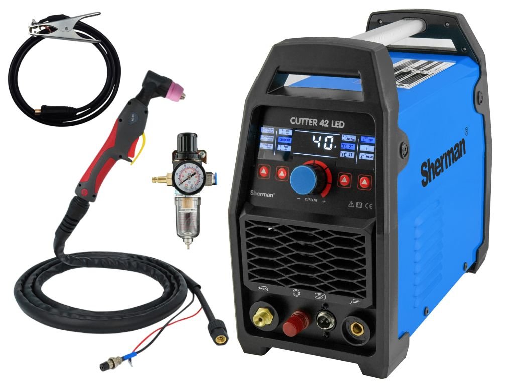 A Sherman CUTTER 42 LED plazmavágó egy modern, digitálisan vezérelt levegős plazmavágó berendezés, amelyet szénacél, rozsdamentes acél, alumínium és réz vágására terveztek. Ideálisan alkalmas közepes forgácsolási intenzitású termelési műveletekhez, valamint szerviz- és kézműves műhelyek számára.