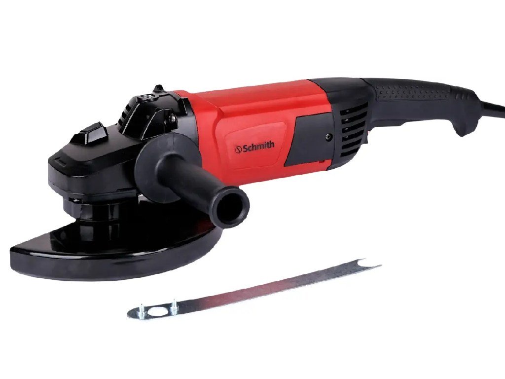 A Schmith 230 mm-es 2100 W-os változtatható sebességű sarokcsiszoló egy erőteljes és megbízható szerszám, amely ideális nehéz és igényes csiszolási és vágási munkákhoz.