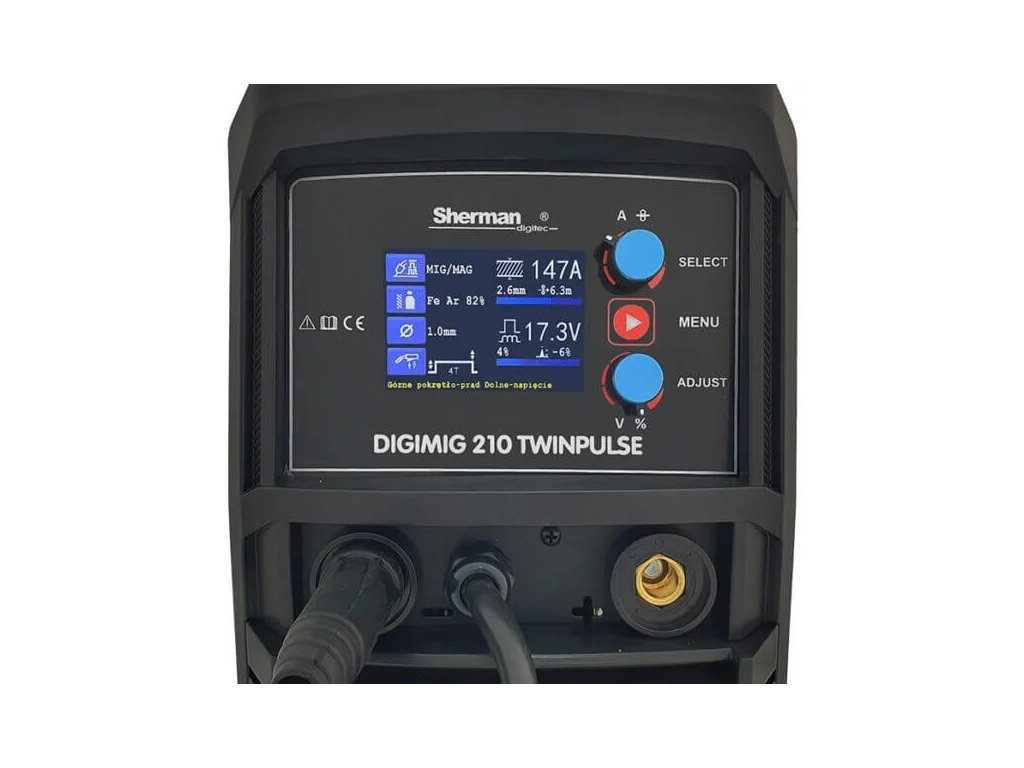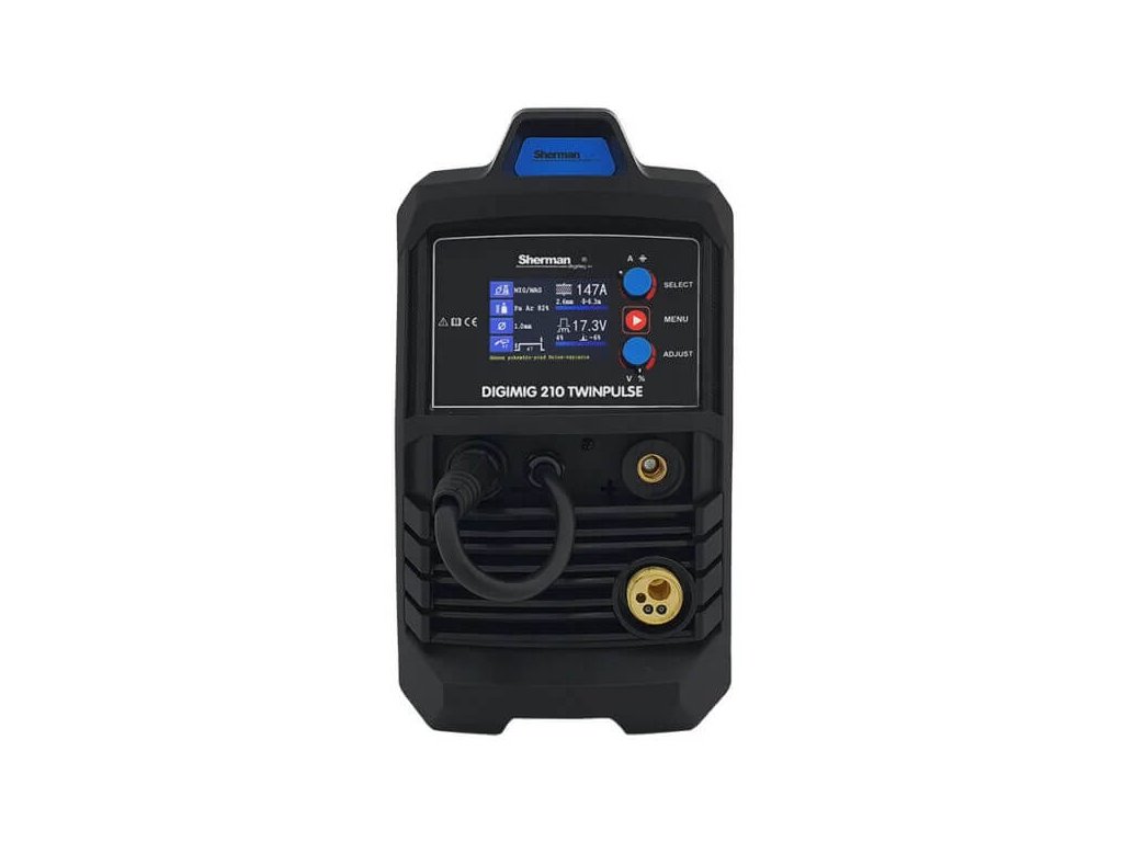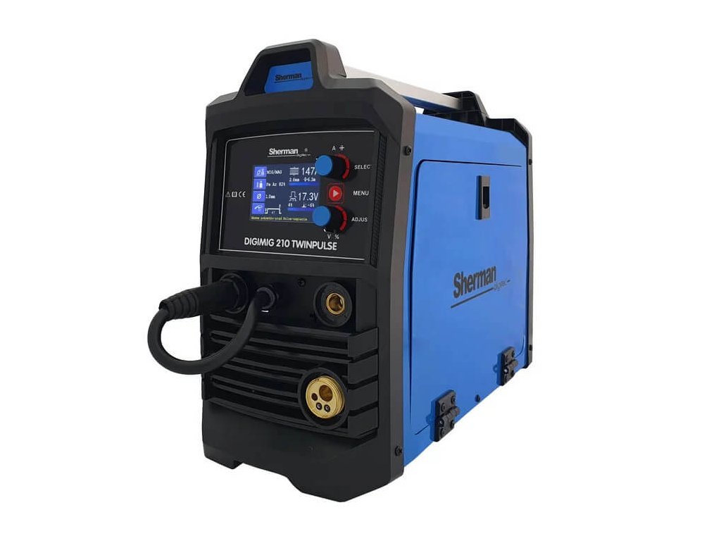 Sherman DIGIMIG 210 TWINPULSE hegesztőgép acélok, rozsdamentes acélok és színesfémek kézi hegesztésére szolgál. Lehetővé teszi az MMA (elektróda), TIG Lift (csípés), MIG/MAG (CO2) és a forrasztást.